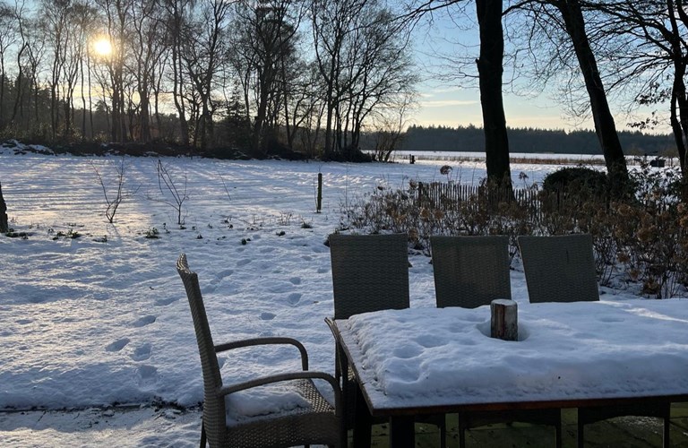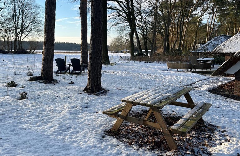 Buiten kunt u heerlijk zitten of dineren met het hele gezin in de lounge of aan de terrastafel en genieten van het buitenleven. Om extra lang van de zon te kunnen genieten is er nog recent een tweede terras aangelegd. Wellicht spot u wat wild zoals een specht, een ree of een eekhoorntje, de acrobaat van het bos.
