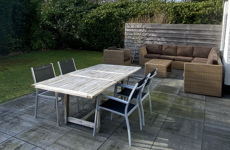 De grote tuin ligt op het zuiden en biedt veel privacy. Op het terras met de buitenhaard, die in de zomermaanden op het terras staat en direct via de woonkamer te bereiken is, geniet u zorgeloos van het buitenleven. De volledig afgesloten tuin met een trampoline en zandbak maken uw verblijf ook met kinderen en een trouwe viervoeter zeer aangenaam. Tevens biedt het park speelfaciliteiten. Bij het huis is parkeergelegenheid aanwezig.